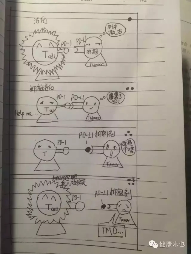 T細(xì)胞的哨兵就是PD-1,癌細(xì)胞辦假證(證件就是PD-L1),所以哨兵被騙了。PD-1單抗藥物就是憲兵,過(guò)去跟哨兵(PD-1)說(shuō),瞎眼啦,你倆別握手了,這丫的是癌細(xì)胞,干掉丫的。然后T細(xì)胞就去把癌細(xì)胞弄死了。