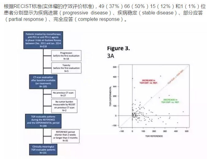 根據(jù)RECIST標準(實體瘤的療效評價標準),49(37%)66(50%)15(12%)和1(1%)位患者分別顯示為疾病進展(progressive disease)、疾病穩(wěn)定(stable disease)、部分應答(partial response)、完全應答(complete response)。