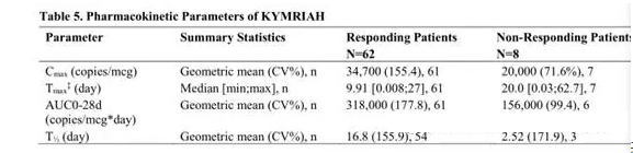 下表5總結(jié)了KYMRIAH的藥代動力學參數(shù)