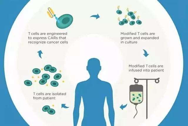 近兩年還有一個(gè)非常熱門(mén)的細(xì)胞治療的方法叫CAR-T技術(shù),簡(jiǎn)單來(lái)說(shuō)它就是一個(gè)人工制造的殺傷性細(xì)胞。我們知道細(xì)胞殺傷的時(shí)候,它要能夠找到腫瘤的靶標(biāo),但在人體的免疫系統(tǒng)當(dāng)中能夠精確識(shí)別腫瘤的這種靶細(xì)胞還是非常少的,所以科學(xué)家就考慮能不能給這些殺傷細(xì)胞裝上一雙眼睛、裝上一根天線(xiàn)讓它更準(zhǔn)確識(shí)別腫瘤細(xì)胞,這樣提高了殺傷的準(zhǔn)確性和效率都。