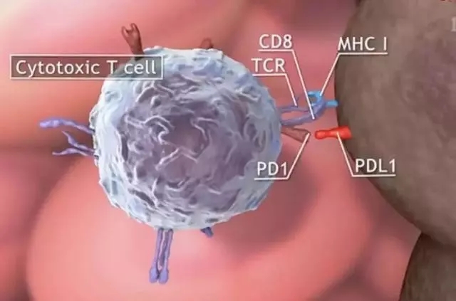 狡猾的腫瘤君會(huì)通過(guò)產(chǎn)生一些抑制性物質(zhì)來(lái)麻痹免疫系統(tǒng),甚至有一些腫瘤還會(huì)有特殊武器,它的細(xì)胞膜上有一種能夠抵抗免疫細(xì)胞的分子叫PDL-1,腫瘤會(huì)通過(guò)PDL-1逐步誘導(dǎo)殺傷性細(xì)胞表達(dá)叫PD-1的分子,兩者一旦結(jié)合就啟動(dòng)免疫細(xì)胞的自殺機(jī)制,讓其失去了對(duì)腫瘤的攻擊力。這就好比汽車(chē)上的剎車(chē),簡(jiǎn)單來(lái)說(shuō)就是腫瘤細(xì)胞用PDL-1踩PD-1的剎車(chē)。