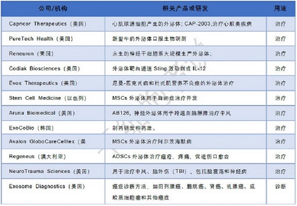基于外泌體開發(fā)和應(yīng)用的部分企業(yè)(圖:干細(xì)胞者說制)