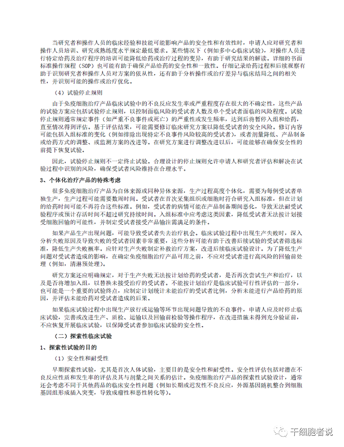 三、主要內(nèi)容與說明本指導(dǎo)原則介紹了免疫細(xì)胞治療產(chǎn)品在開展臨床試驗(yàn)時(shí)的一般考慮及個(gè)體化治療產(chǎn)品的特殊考慮,對免疫細(xì)胞治療產(chǎn)品開展探索性臨床試驗(yàn)和確證性臨床試驗(yàn)的研究目標(biāo)、研究方法和評價(jià)方式等進(jìn)行了闡述,并提出免疫細(xì)胞治療產(chǎn)品長期隨訪的相關(guān)要求。本指導(dǎo)原則的內(nèi)容適用于按照藥品管理相關(guān)法規(guī)進(jìn)行研發(fā)和注冊申報(bào)的細(xì)胞免疫治療產(chǎn)品,旨在為該類產(chǎn)品開展臨床試驗(yàn)的總體規(guī)劃、設(shè)計(jì)、實(shí)施和試驗(yàn)數(shù)據(jù)分析等方面提供必要的技術(shù)指導(dǎo),以減少受試者參加臨床試驗(yàn)的風(fēng)險(xiǎn),并規(guī)范對細(xì)胞免疫治療產(chǎn)品的安全性和有效性的評價(jià)方法。部分免疫細(xì)胞治療產(chǎn)品兼具細(xì)胞治療和基因治療產(chǎn)品的特性。本指導(dǎo)原則的目的不是對其監(jiān)管屬性或分類的認(rèn)定,而是基于現(xiàn)有認(rèn)識,對細(xì)胞免疫治療產(chǎn)品開展臨床試驗(yàn)時(shí)若干技術(shù)問題的建議和推薦,內(nèi)容不具有強(qiáng)制性,隨著研究和認(rèn)識的深入,原則內(nèi)容將繼續(xù)修訂和完善。鼓勵(lì)申辦者與藥品審評中心就試驗(yàn)方案的具體設(shè)計(jì)和細(xì)節(jié)進(jìn)行溝通。