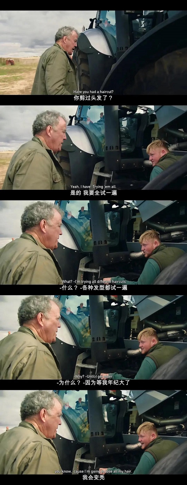 前段時(shí)間看了個(gè)紀(jì)錄片《克拉克森的農(nóng)場(chǎng)》,(發(fā)際線告危)的克拉克森和年輕農(nóng)夫小伙的一段對(duì)話給我笑壞了。