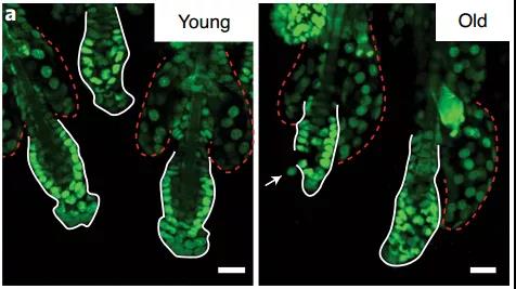令人驚訝的是,研究者還專門分析了年輕小鼠與衰老小鼠毛囊中凋亡細(xì)胞的數(shù)量,發(fā)現(xiàn)并沒有區(qū)別。